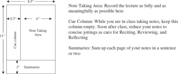 - Questions: As soon after class as possible, formulate questions based on the notes in the right-hand column. Writing questions helps to clarify meanings, reveal relationships, establish continuity, and strengthen memory. Also, the writing of questions sets up a perfect stage for exam studying later.