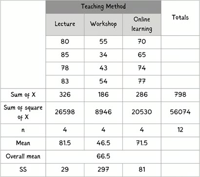 - 3. Calculate the sum of squares between the group, the sum of squares within the group, and the total sum of squares.
