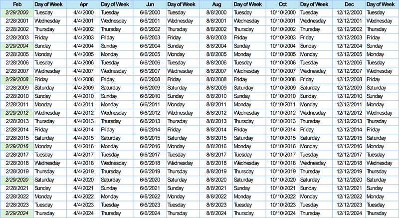 In applying the algorithm, you will need to know whether a particular year is a leap year. In general, if a year is divisible (evenly) by 4, it is a leap year. However, there are exceptions. Century years, such as 1800 and 19(H), are not leap years, despite the fact that they are divisible by 4. Furthermore, as an exception to the exception, a century year that is divisible by 400 (such as the year 20) is a leap year.