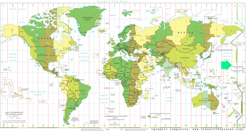 Once again, time zones aren’t about geographical locations based on their position of North vs South or international country boundaries but rather, the West-East coordination: the same country can have several different time zones, but one time zone may apply to several different countries. To make this easier, think of it this way: if you can draw a vertical line across the map, the countries on that line will share the same time zone. However, if you draw a horizontal line from West to East, the countries on the line will be in different time zones.