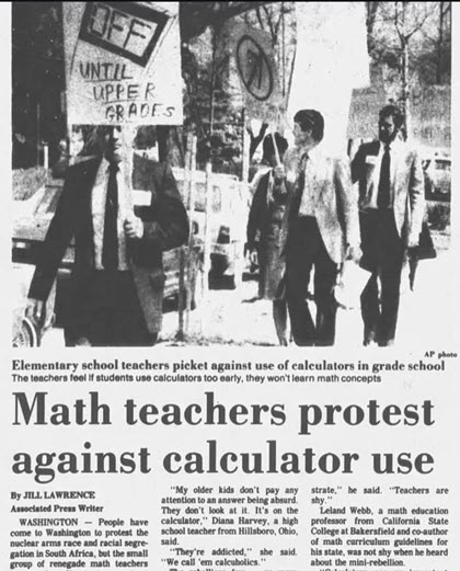 These protesters feared that “premature” dependence on technology would weaken students’ basic arithmetic skills and result in a generation unable to perform simple mental math.