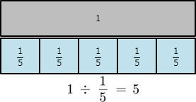 Even when we divide a natural number by a fraction (i.e., a smaller number from, a larger number), we can understand that one can be divided into 5 pieces.