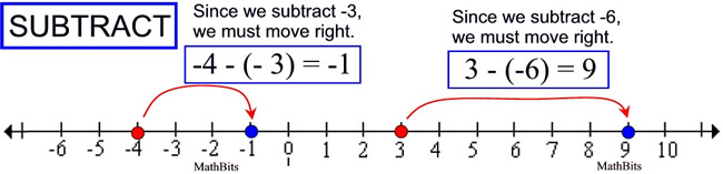 if you are subtracting a negative number, you will need to move in a positive directions, (meaning right instead of left) as the negative indicates the opposite of subtracting that value.
