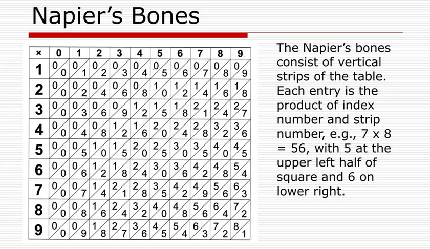- The principles of lattice multiplication used in Napier’s bones influenced later tools, including the slide rule. [3]