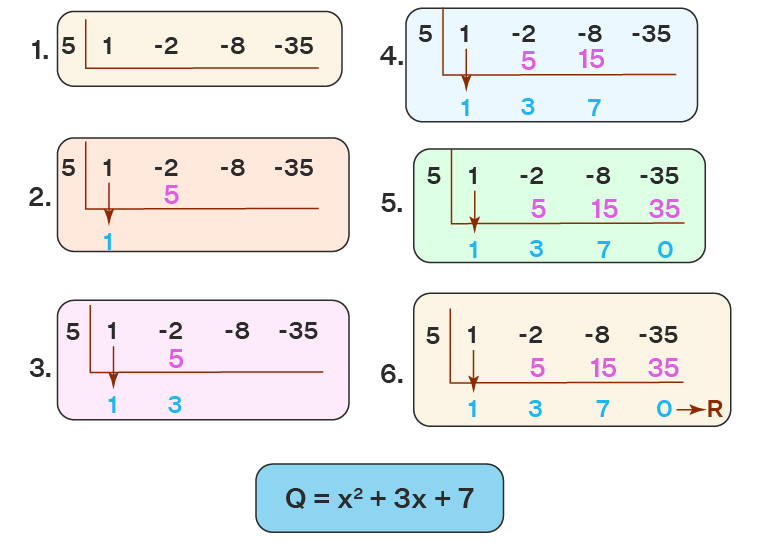 - Repeat steps 2–5 until reaching the last term of the dividend.