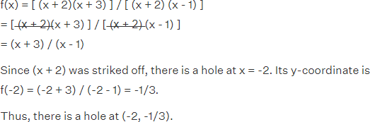 Example: Find the holes of the function f(x) = (x2 + 5x + 6) / (x2 + x – 2).