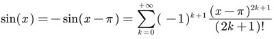 | sin(x) | x – x3/3! + x5/5! – x7/7! + x9/9! – … |