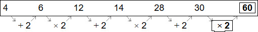 Sequence: 4, 6, 12, 14, 28, 30, ___